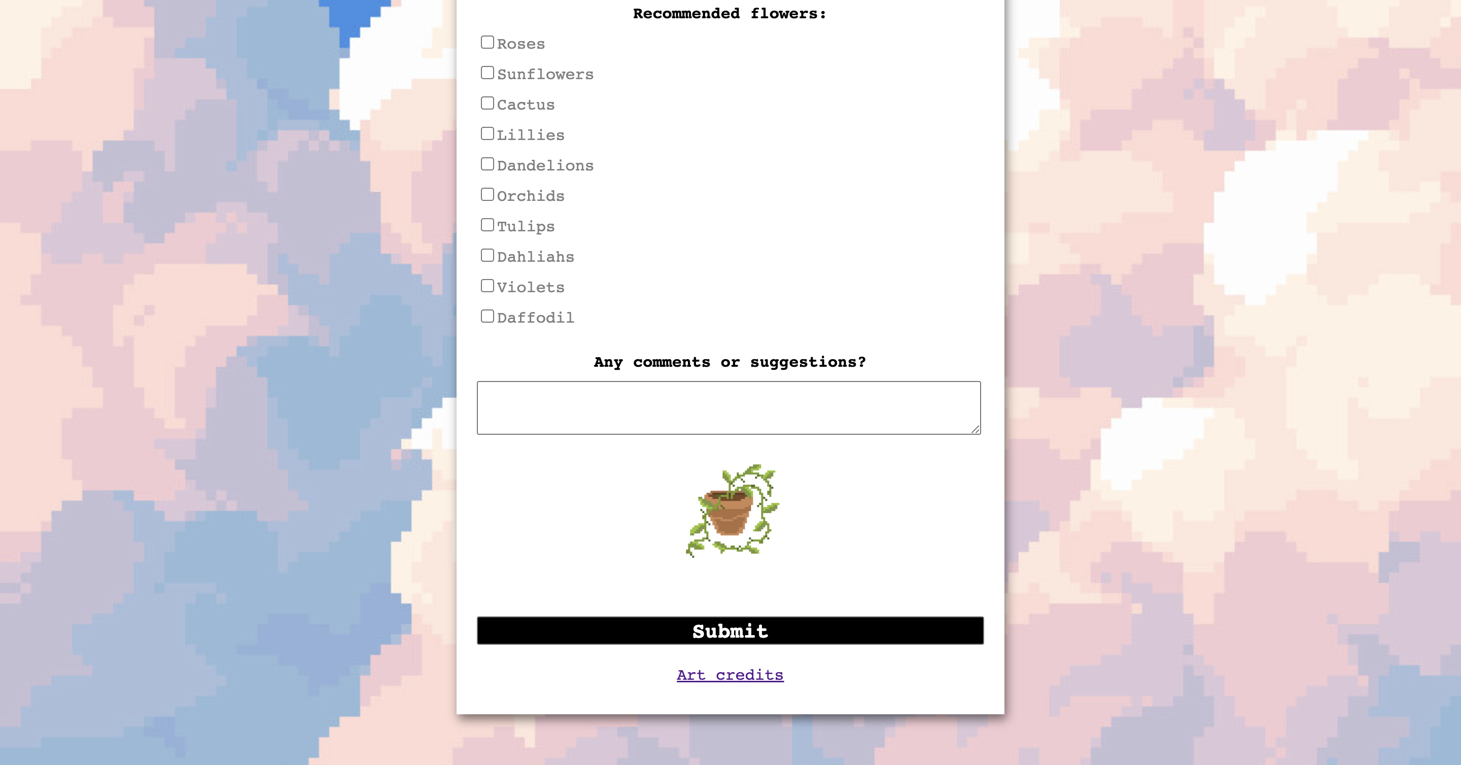 Hey there! My name is Alcina Summers! I am 24 and my pronouns are she/her. I am a Front End Developer and Web Designer, certified in HTML, CSS, Javascript and various Front End Development Libraries.